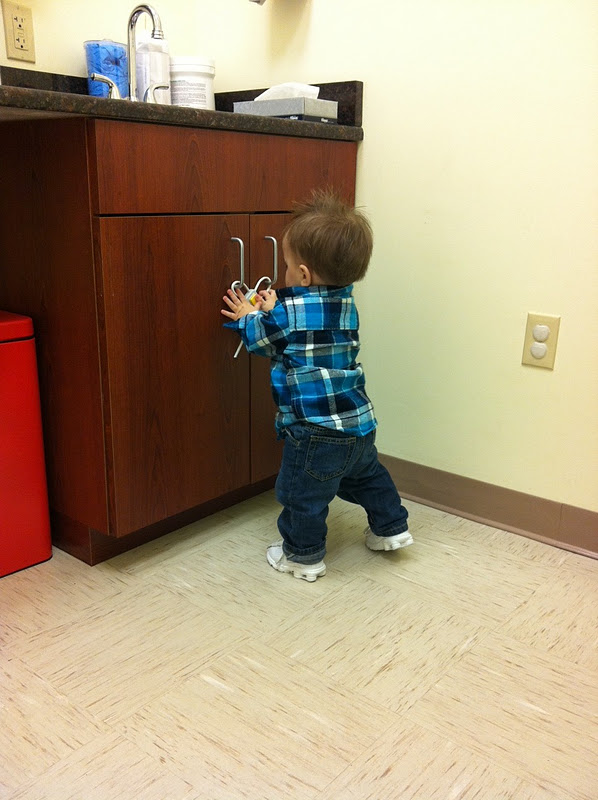 We were the first baby called into surgery. They brought us back to a triage/check-in area and proceeded to put J in a gown and take his vitals. (The gown somehow made him seem so small and innocent…..) He was so wonderful and did not cry one time. He just enjoyed flirting with all the nurses! Dr. Kosco came and talked with us to ensure we had all of our questions answered and then the nurse took our little guy away. Now I think it would have been extremely difficult if he had cried when they took him from his mommy and daddy, but oh no not our Tank! He didn’t even look back since he was enthralled with the new woman carting him away!